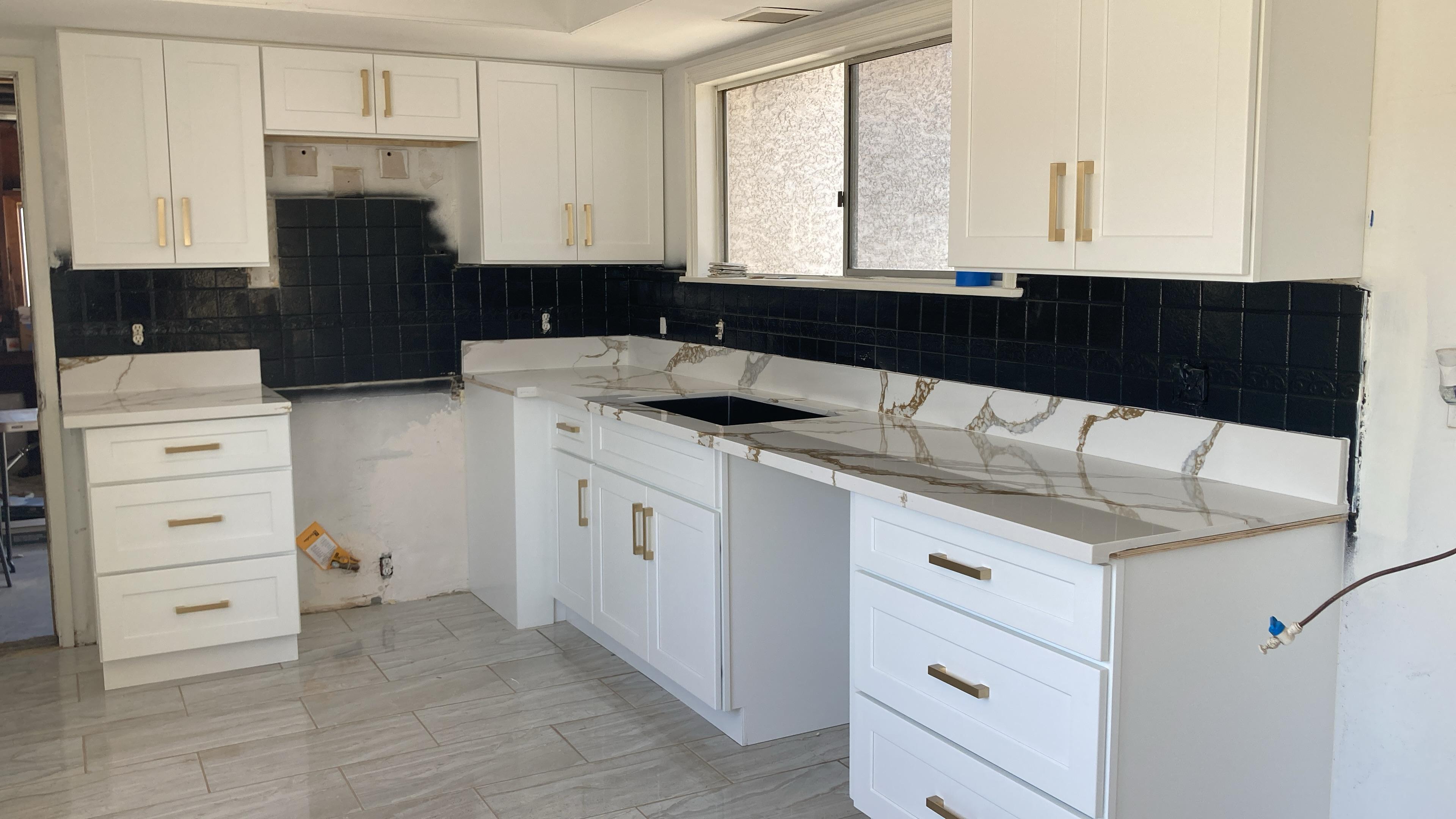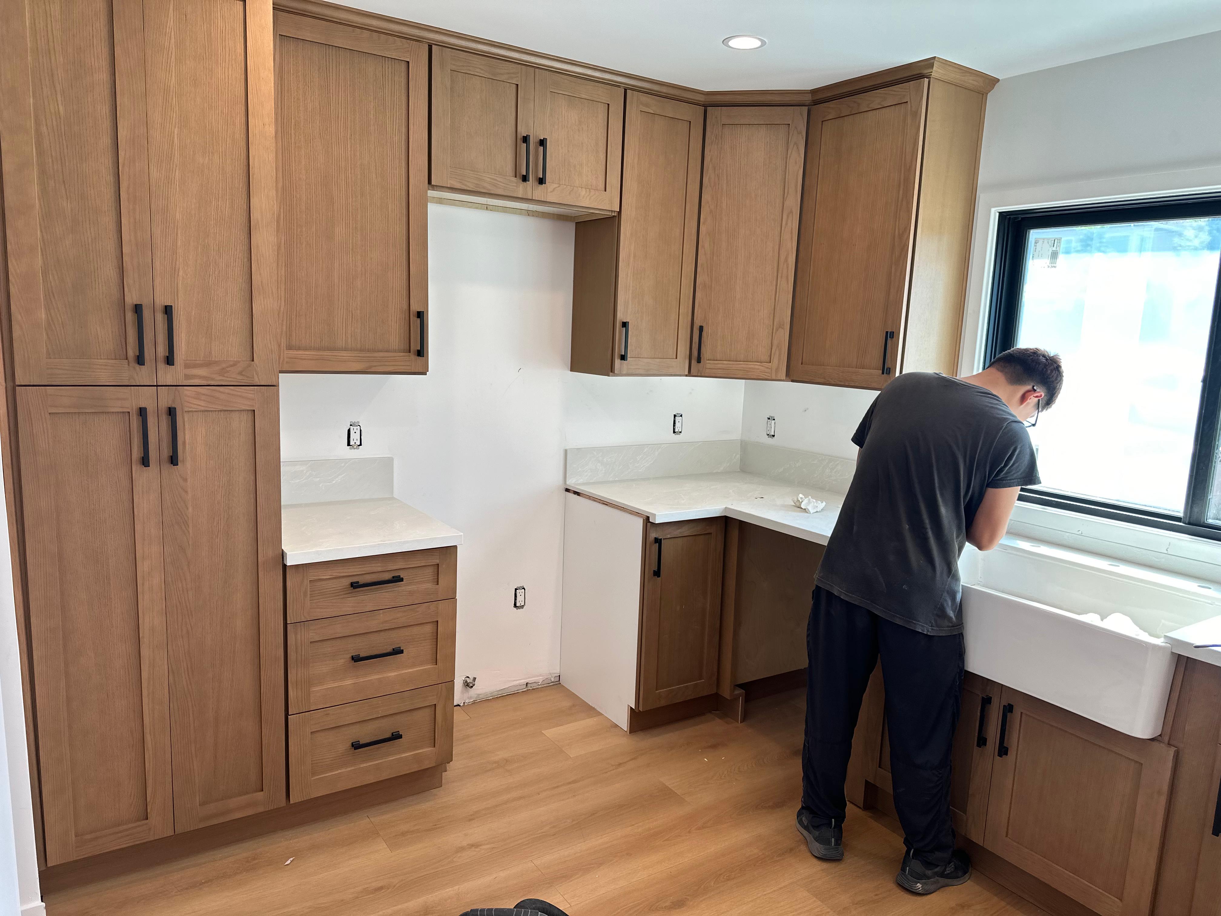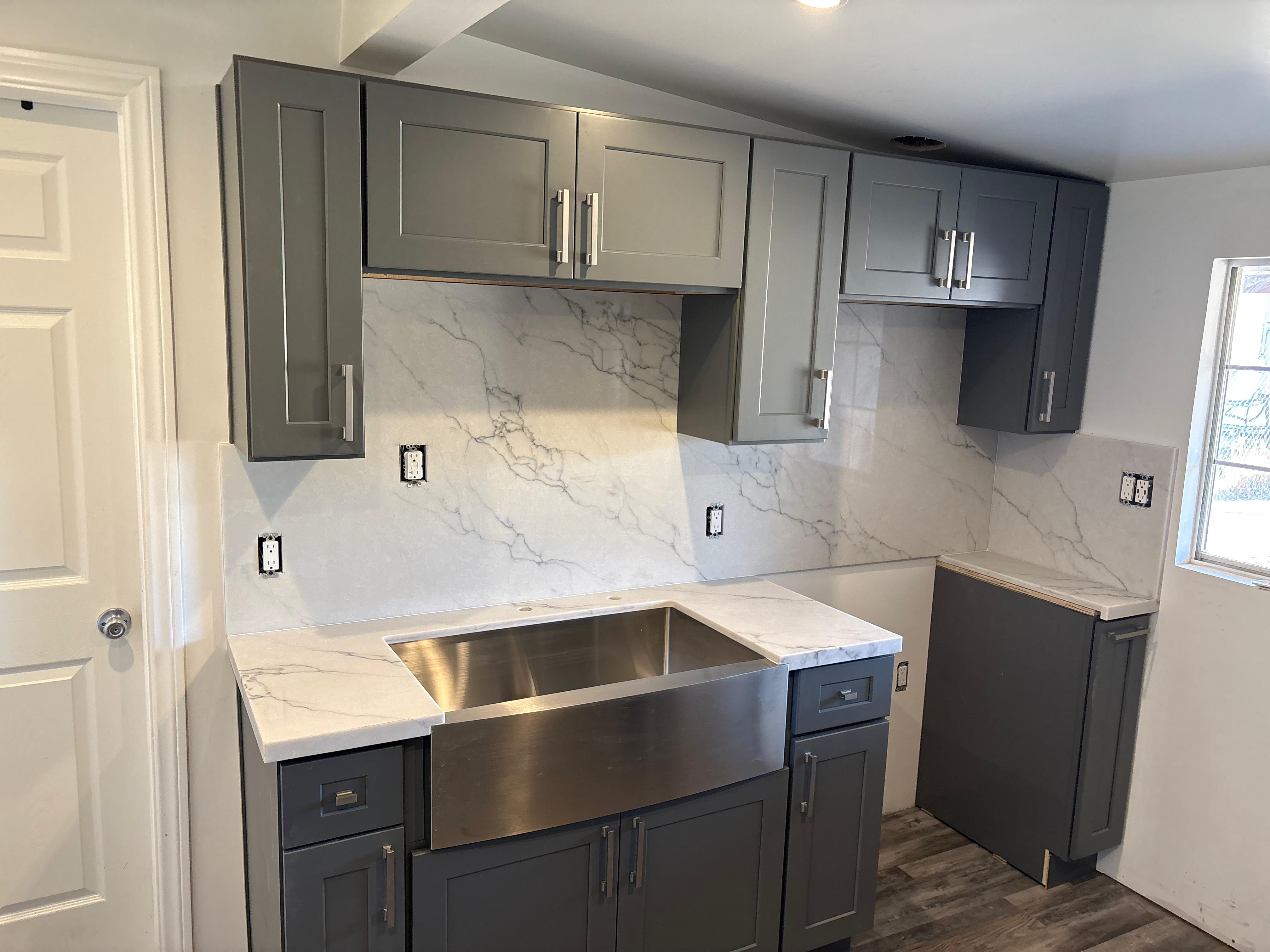 Grey Shaker Cabinetry Installation & Quartz countertop & Backsplash Installation